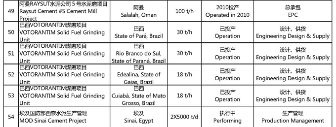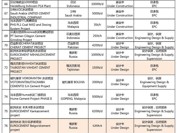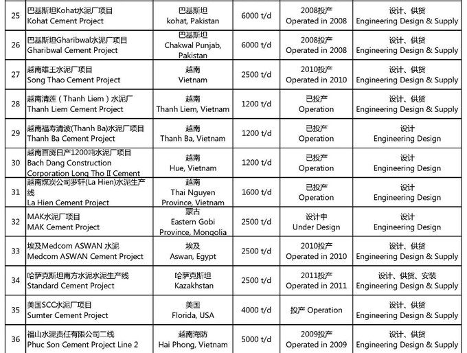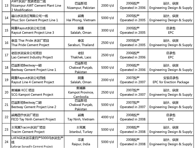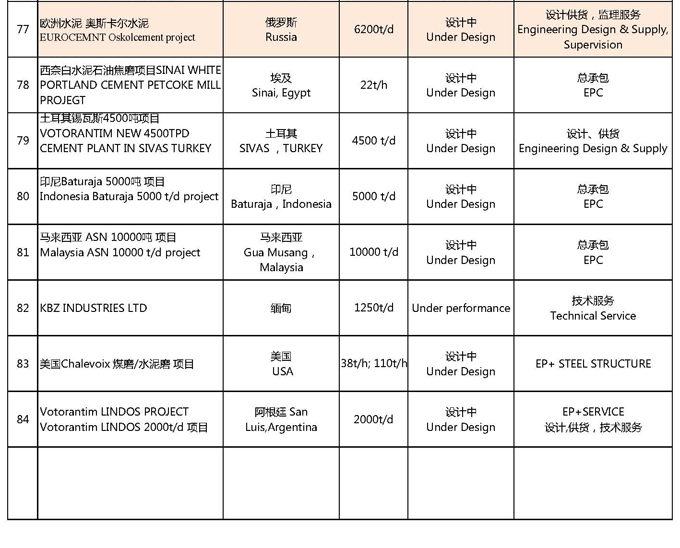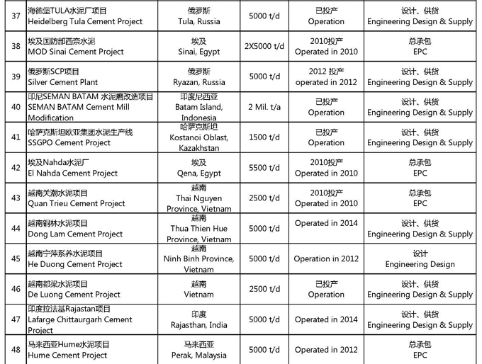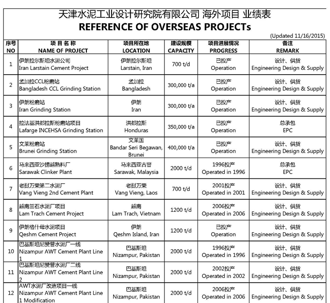 天津水泥工業(yè)設(shè)計(jì)研究院有限公司海外項(xiàng)目業(yè)績(jī)表
